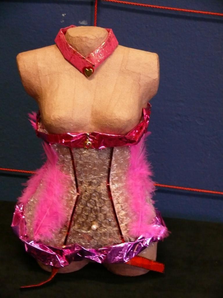 Buste (papiers bulle et emballage,plumes,bijoux fantaisie)